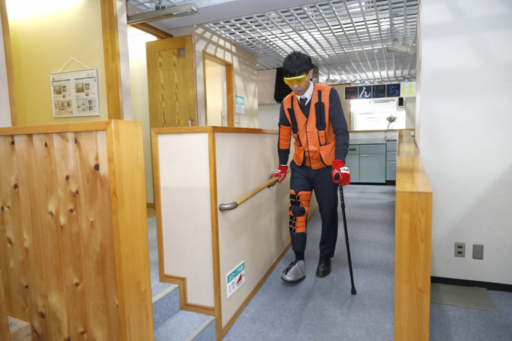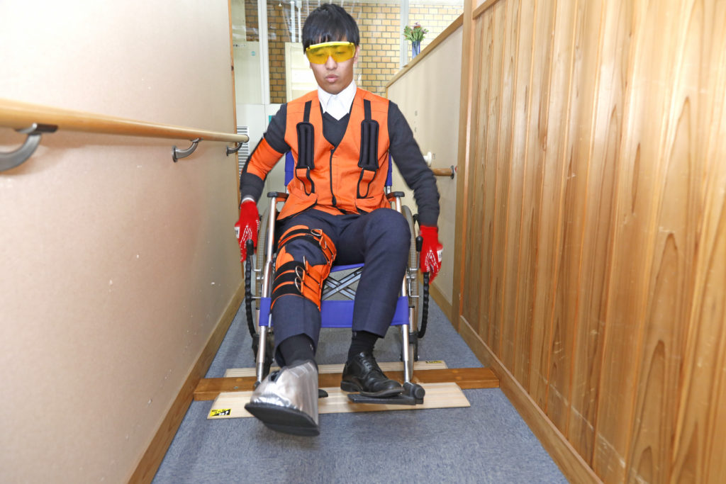 また、高齢者疑似体験セットを装着して、階段の昇り降りや浴槽の出入り、車いす等の体験をする「高齢者疑似体験会」も実施。