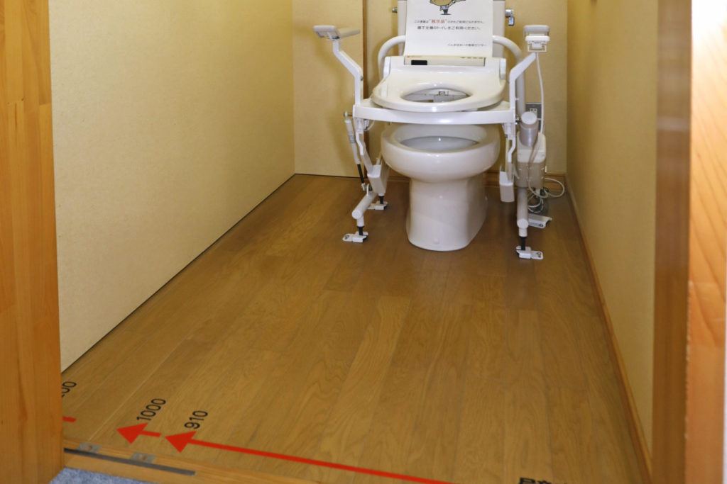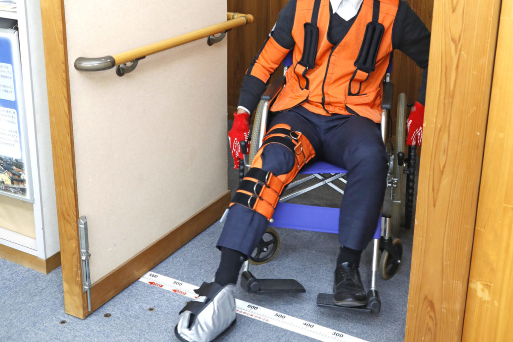 ここでは、介護に必要なトイレの広さなどの体験ができます。