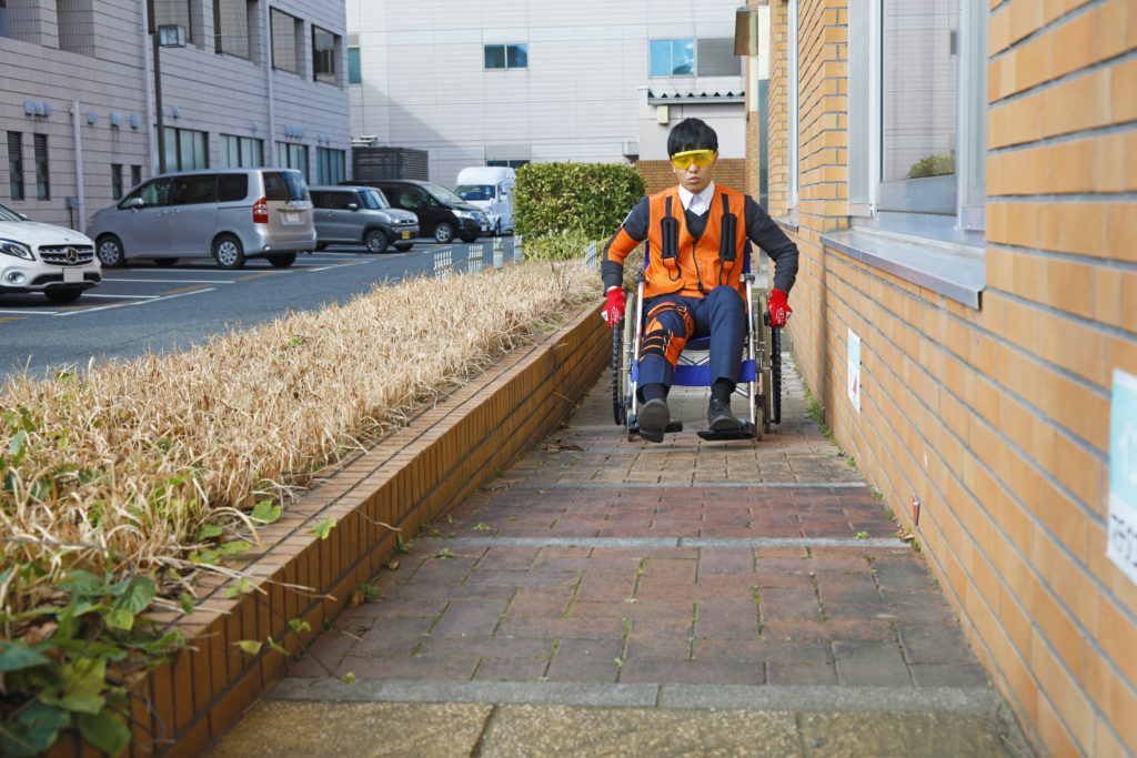 ここでは、廊下の有効幅員が80・90・100・110・125cmに変更することができるので、異なる通路幅を体験することができます。