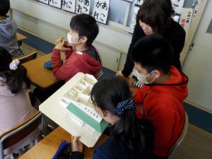 初めて見る住宅模型にみんな興味津々でした。 「寒い季節を快適に~あたたかく住まう工夫~」