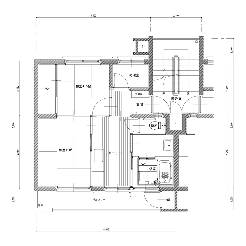 - 詳細6/4.5/DK、水洗トイレ、浴槽釜設置