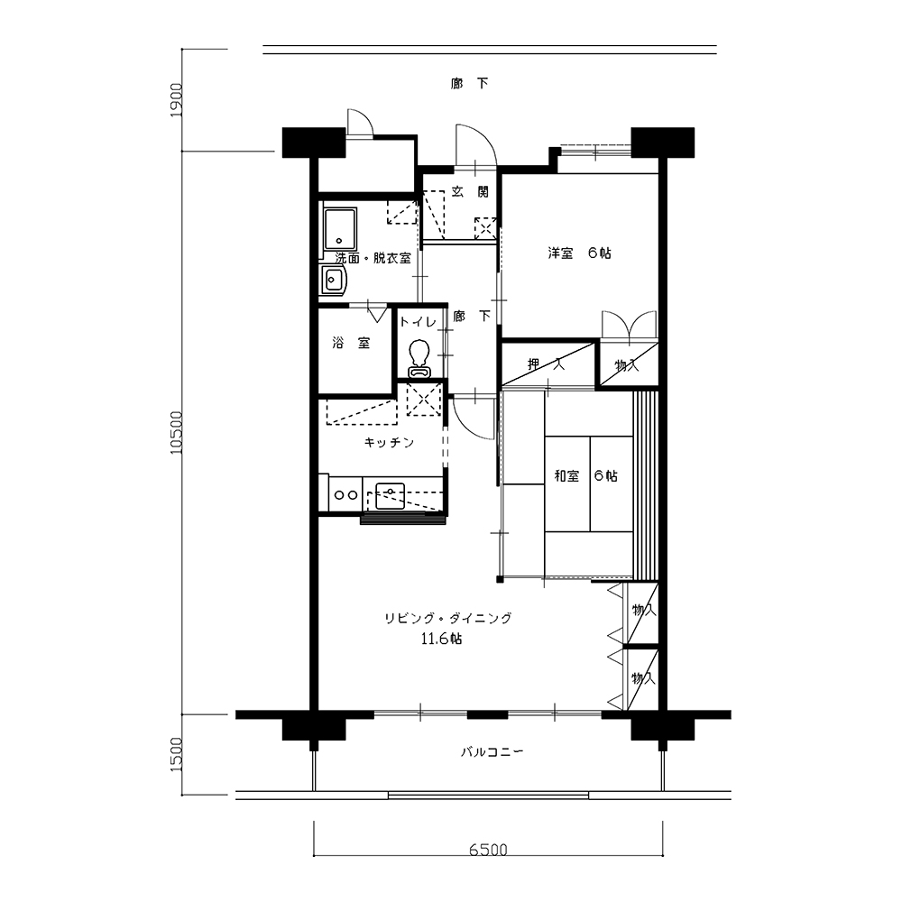 - 詳細6/洋6/DK、水洗トイレ、浴槽釜設置