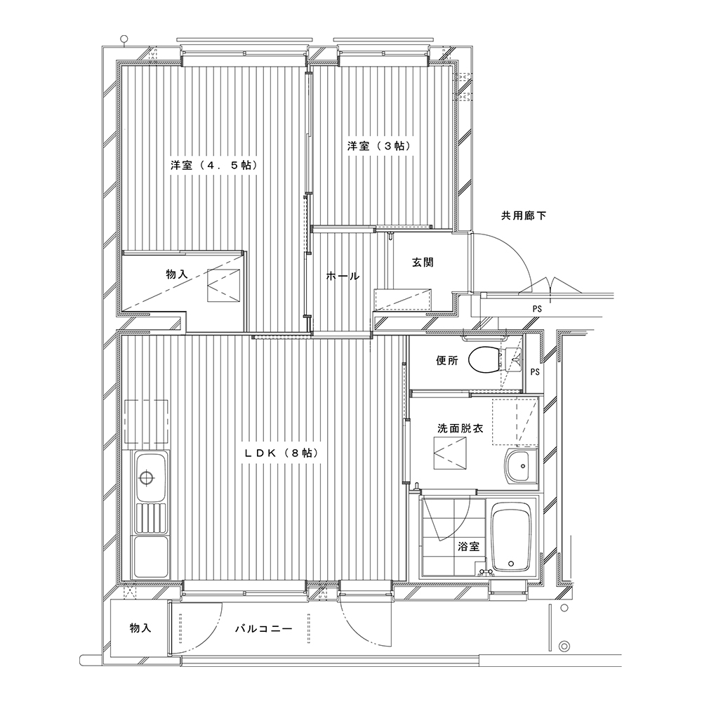 - 詳細洋4.5/洋3/LDK、水洗トイレ、浴槽釜設置