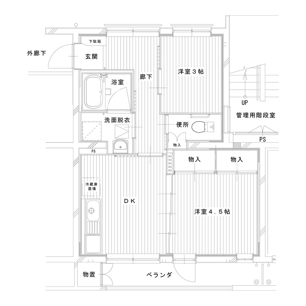 - 詳細洋4.5/洋3/DK、水洗トイレ、浴槽釜設置