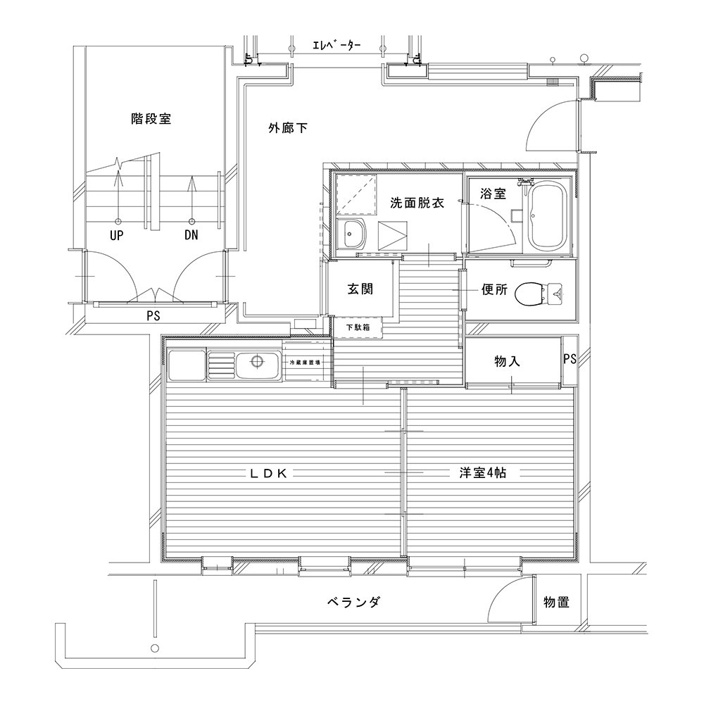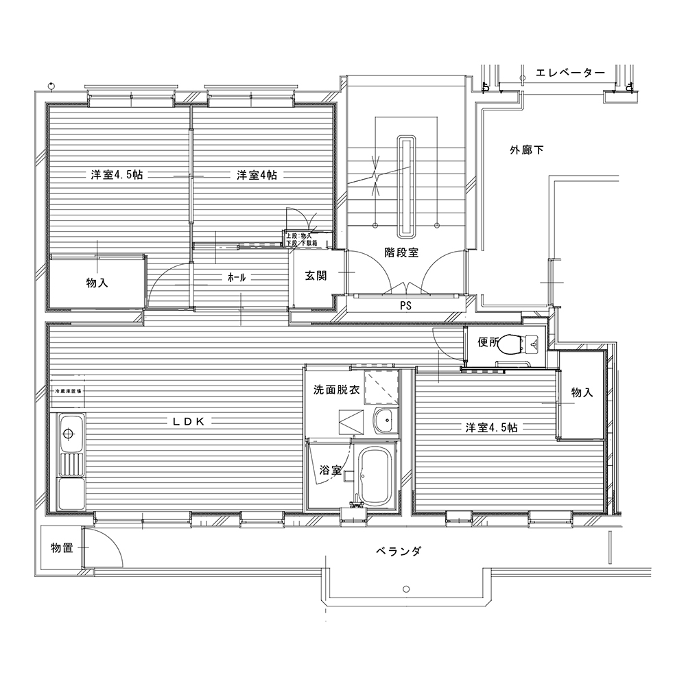 浴室風呂釜(壁掛け式)、エレベーター、都市ガス