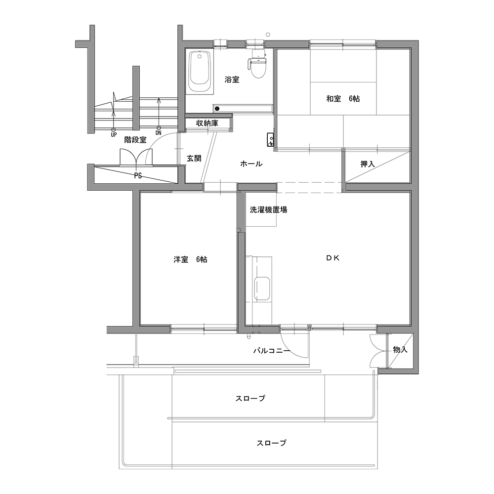 - 詳細(車イス)6/洋6/DK、水洗トイレ、浴槽釜設置