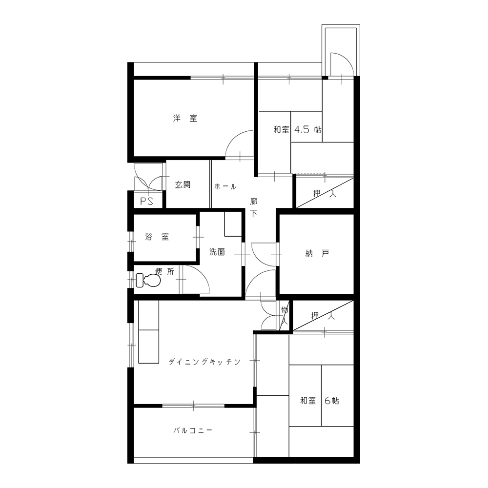 - 詳細6/4.5/洋5/DK/S、水洗トイレ、浴槽釜設置