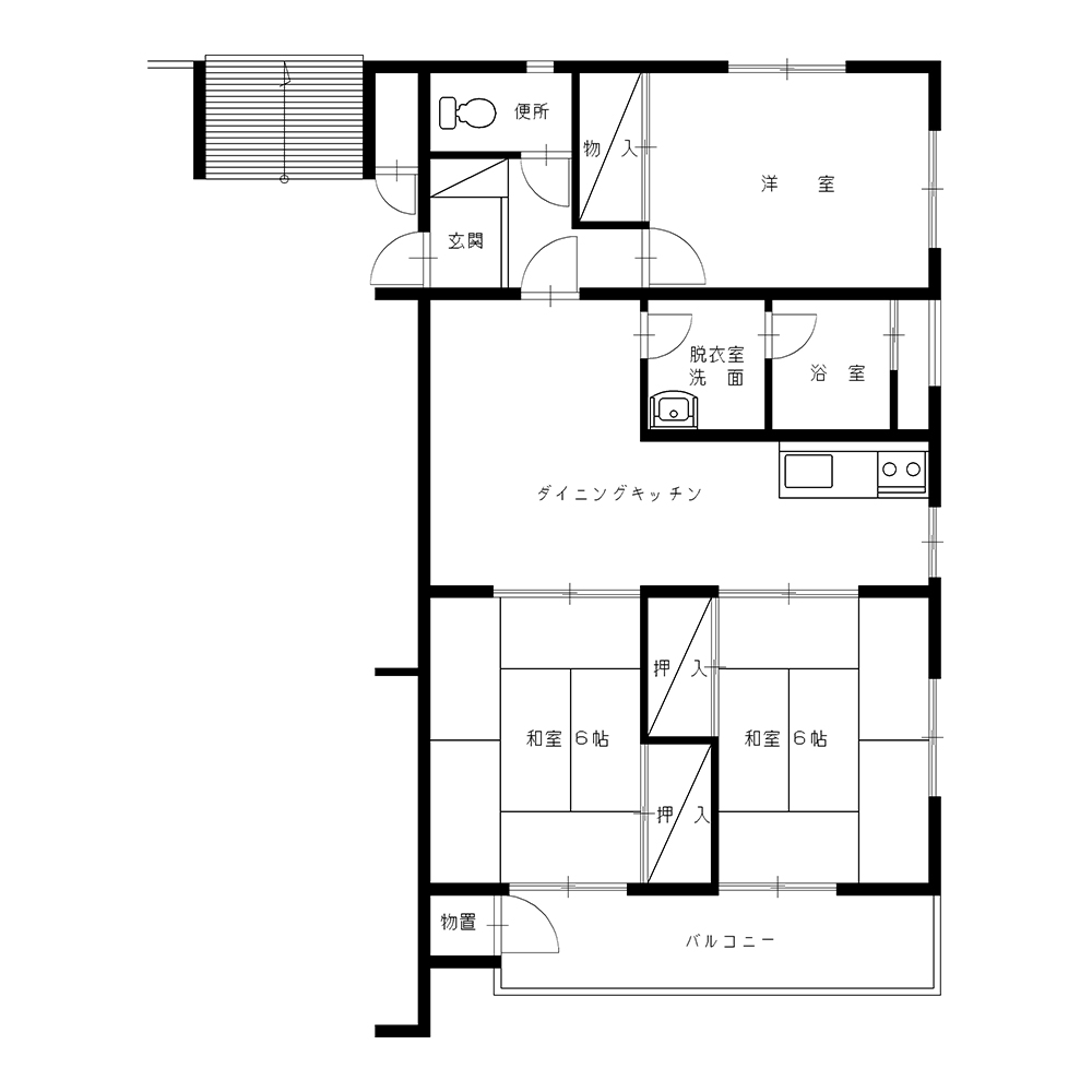 - 詳細6/6/洋6/DK、水洗トイレ、浴槽釜設置