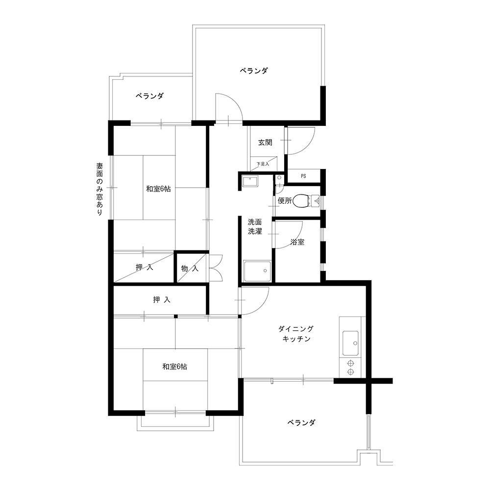 - 詳細6/6/洋6/DK、水洗トイレ、浴槽釜設置