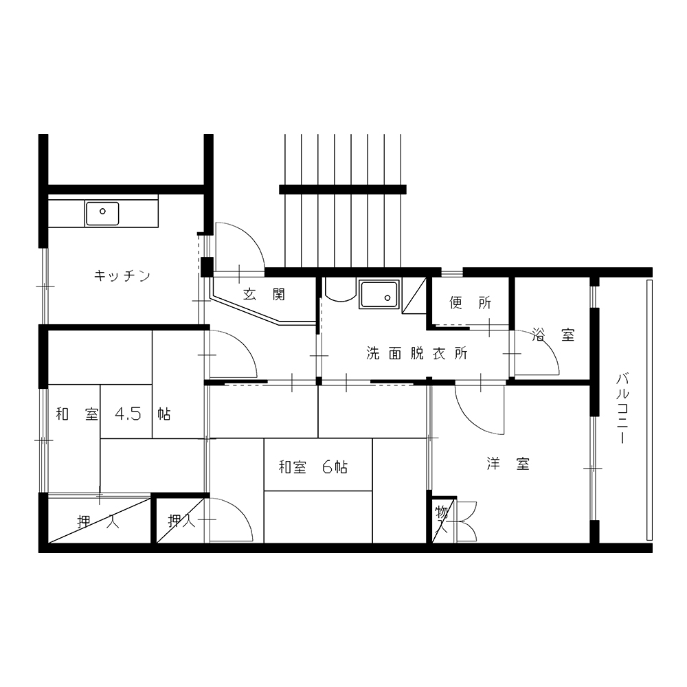 - 詳細6/4.5/洋4.5/K、水洗トイレ、浴槽釜設置