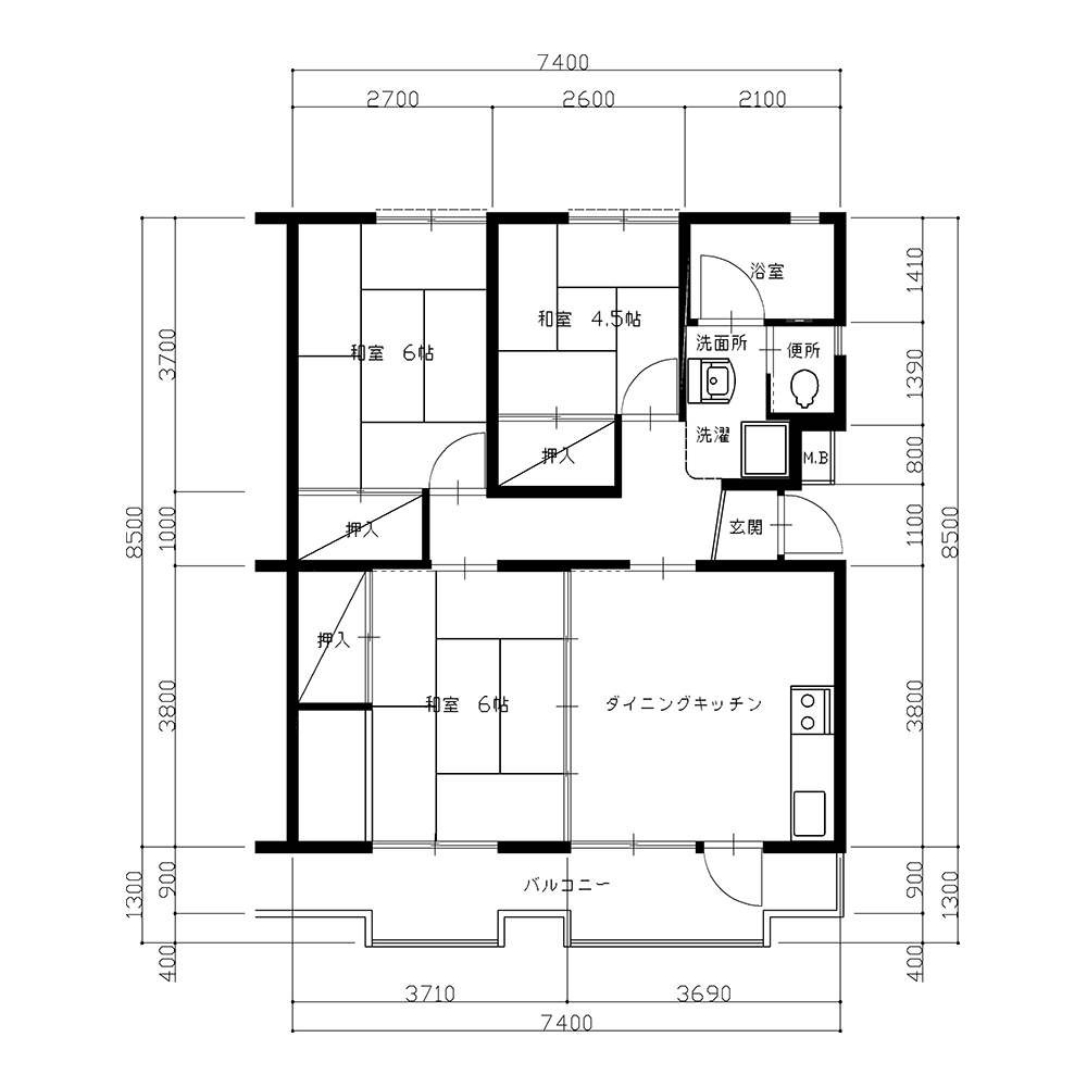 - 詳細6/6/4.5/DK、水洗トイレ、浴槽釜設置
