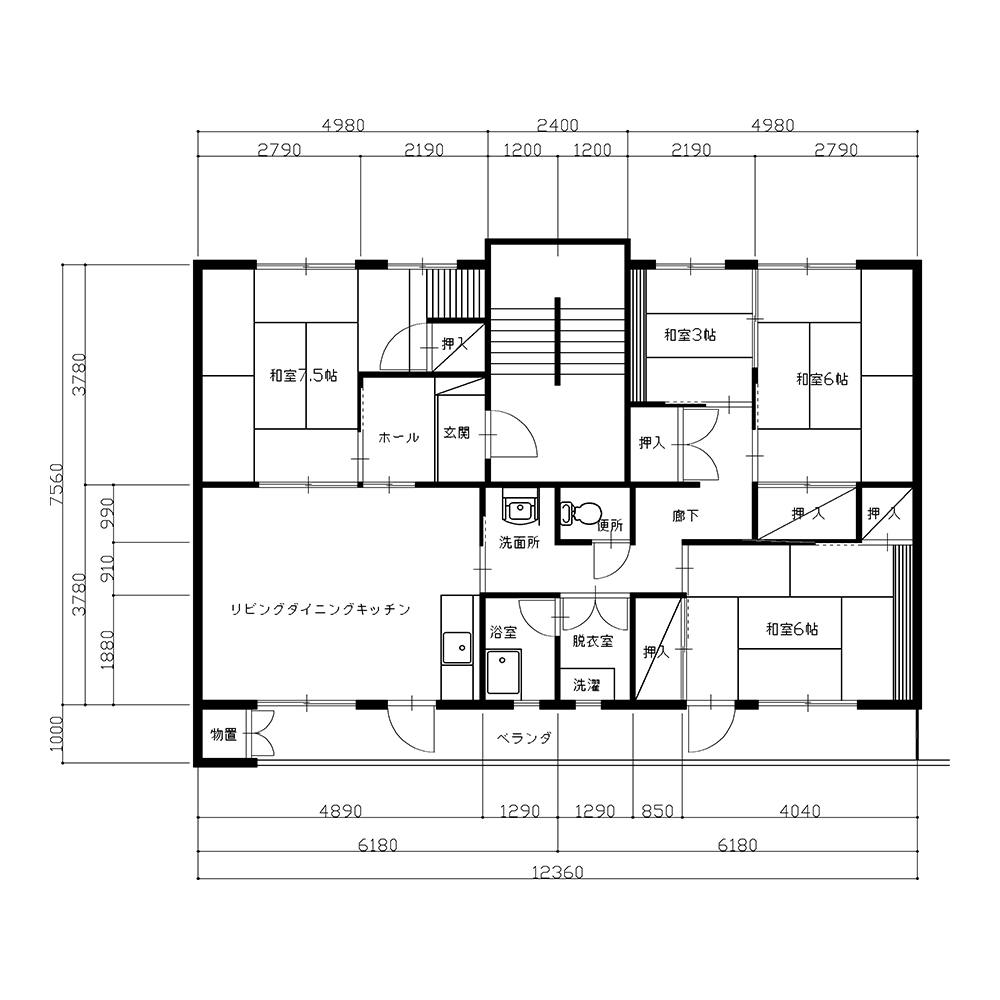 - 詳細7.5/6/6/3/LDK、水洗トイレ、浴槽釜設置